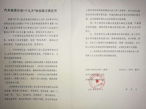最新消息:汽車租賃行業(yè)“十九大”治安保衛(wèi)責(zé)任書
